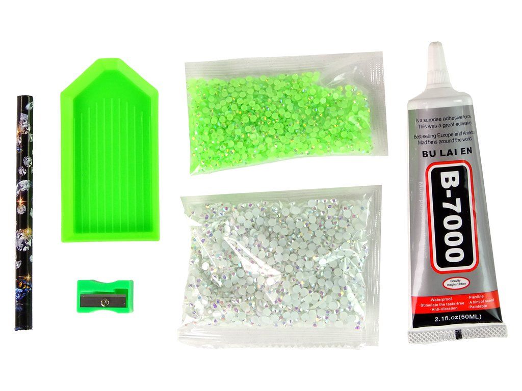 В комплекта ще откриете специална подложка, върху която се поставят кристалчетата, както и два цвята за декорация на малкия еднорог според вашия вкус. Специалният лепило осигурява лепкава повърхност, благодарение на която диамантите остават здраво закрепени. Поставяйте кристалчетата едно по едно и пред очите ви ще се появи красива фигурка! Този комплект ще внесе магия в стаята ви!