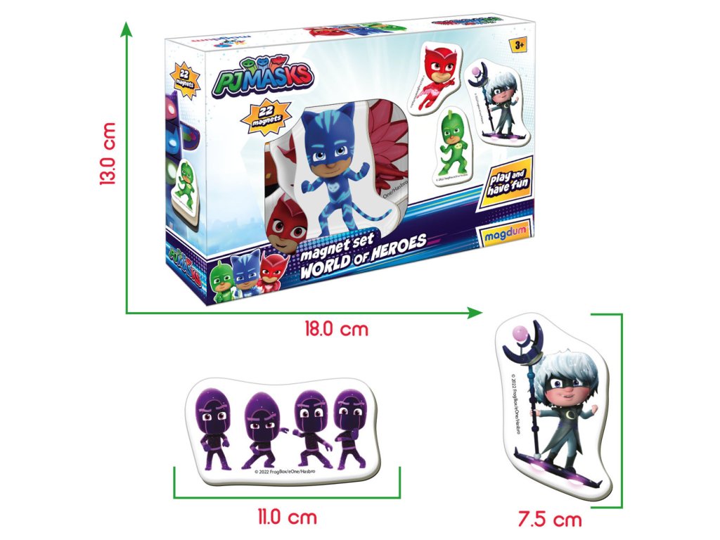 Комплектът съдържа 22 цветни магнита в различни форми и цветове. Благодарение на компактния им размер, те заемат малко място и са идеални за пътуване или отпуск. След играта магнитите изглеждат страхотно на хладилник или метални шкафчета.
