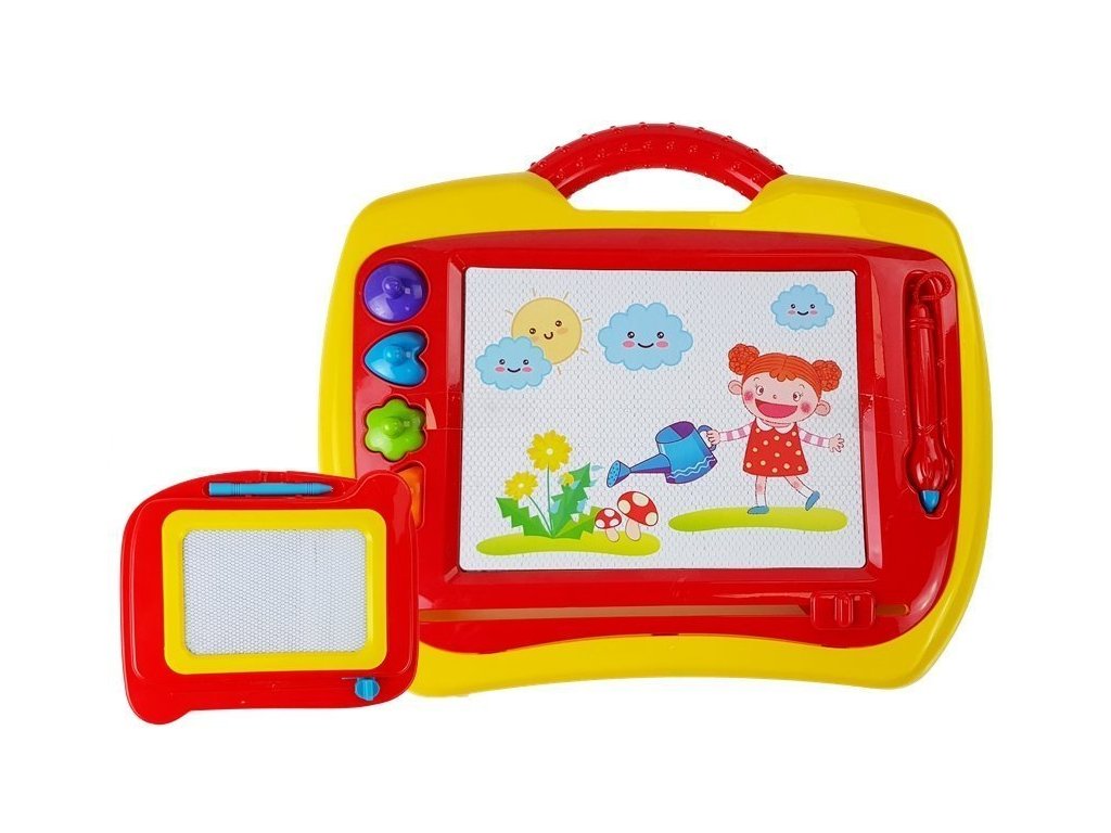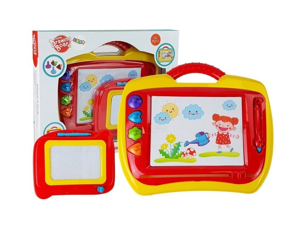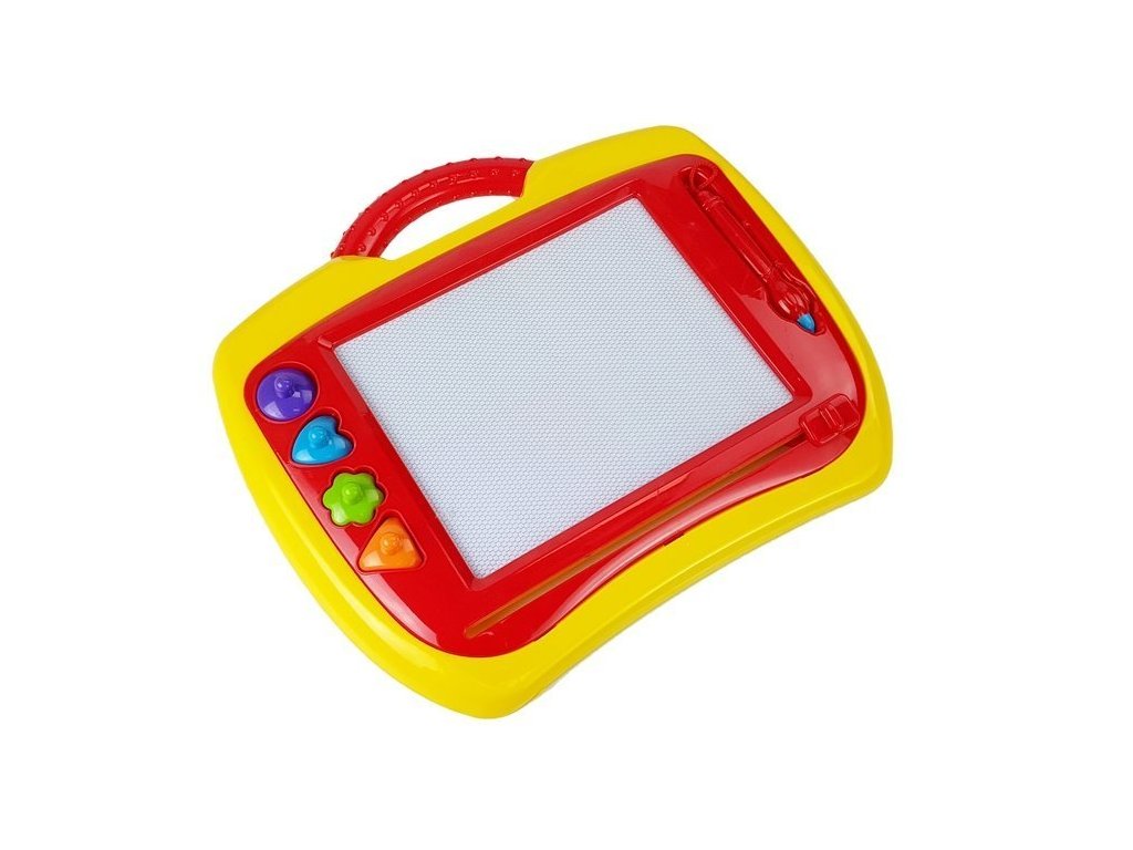 Играчка, с която вероятно всички родители и възпитатели са се запознали още в детството си. На тази магнитна дъска безброй пъти се е писало и рисувало с изчезващи изображения - но не само това! Магнитната дъска с изчезващи изображения е отлична форма на забавление и помощно средство за развитие на ръчните и художествени умения на детето.