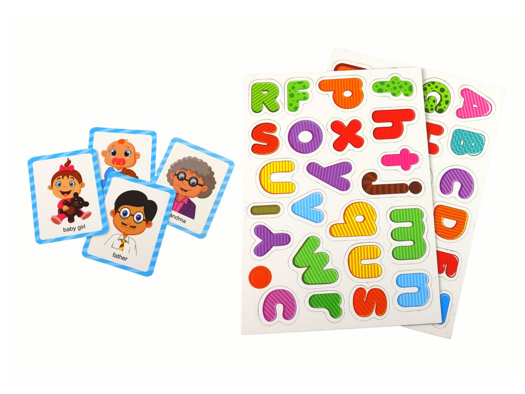 Друг елемент от комплекта са картите с наименования на членове на семейството, което позволява обучение на семейните отношения по атрактивен начин. Детето може да упражнява свързване на правилните фигури с техните имена, развивайки разбирането за света и укрепвайки семейните връзки.