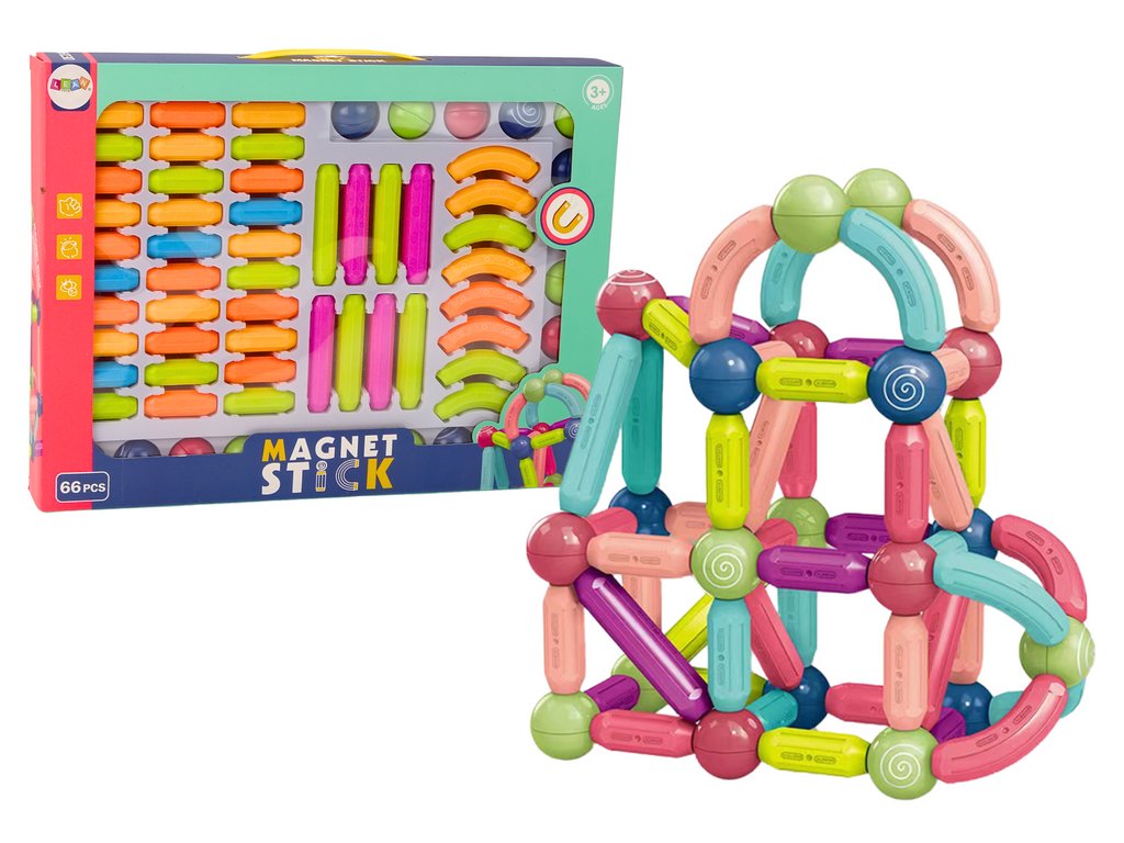 Магнитните строителни блокчета са перфектното решение срещу скуката и прекаленото време пред екраните. Нашият комплект включва 66 здраво изработени части, които осигуряват безброй часове творческа забава. Ярките им цветове не само привличат вниманието, но и вдъхновяват за изграждането на необичайни конструкции, развивайки въображението и фина моторика на децата.
