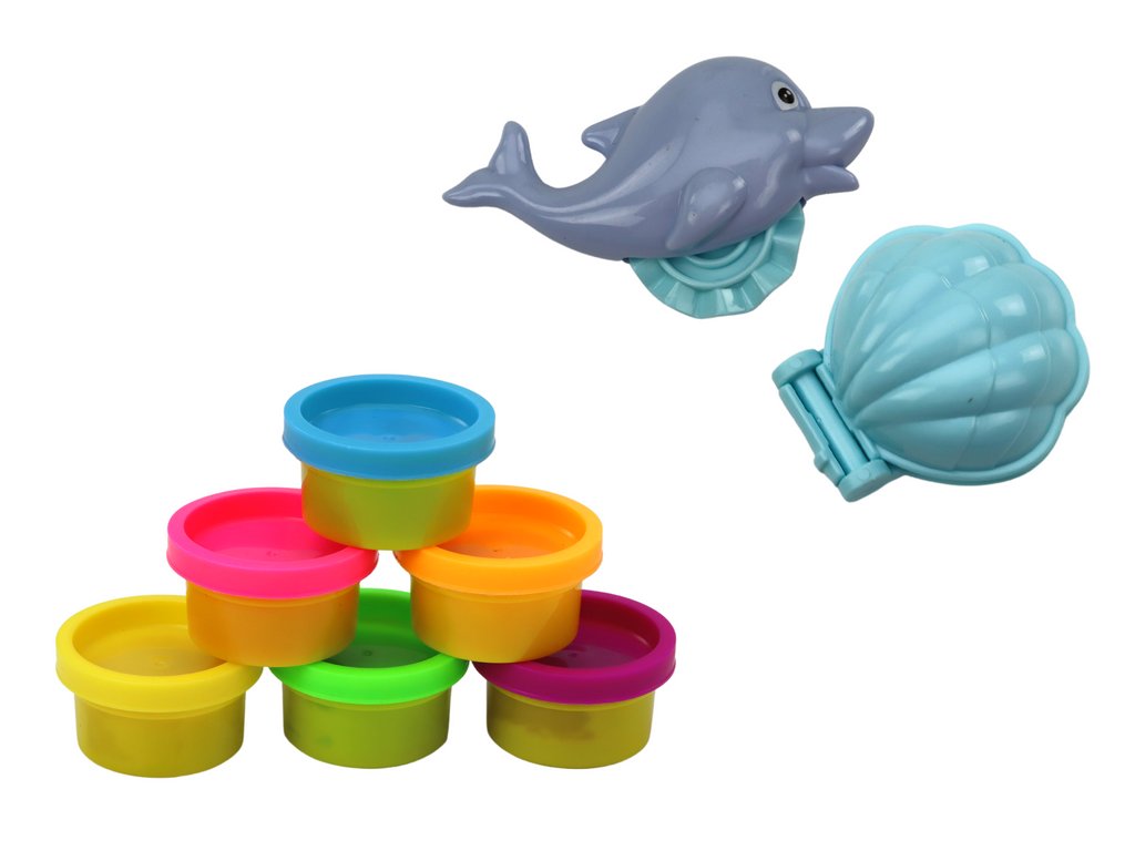 Комплект моделин динозавър 6 цвята форми делфинче мида