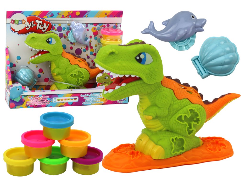 Разнообразието от форми върху основата на динозавъра и многобройните цветове на моделина гарантират безкрайно забавление и възможности за създаване на все по-нови и креативни творения. Играта с моделин стимулира креативността и подпомага развитието на ръчната координация и зрително-моторната координация.