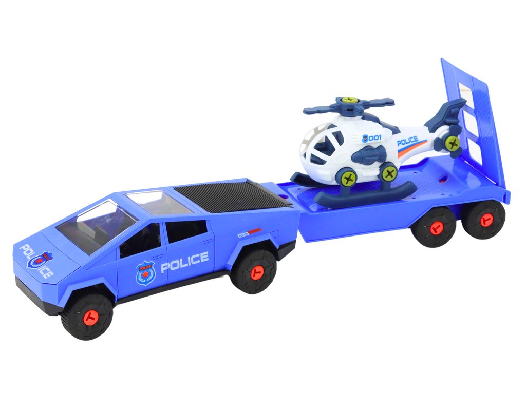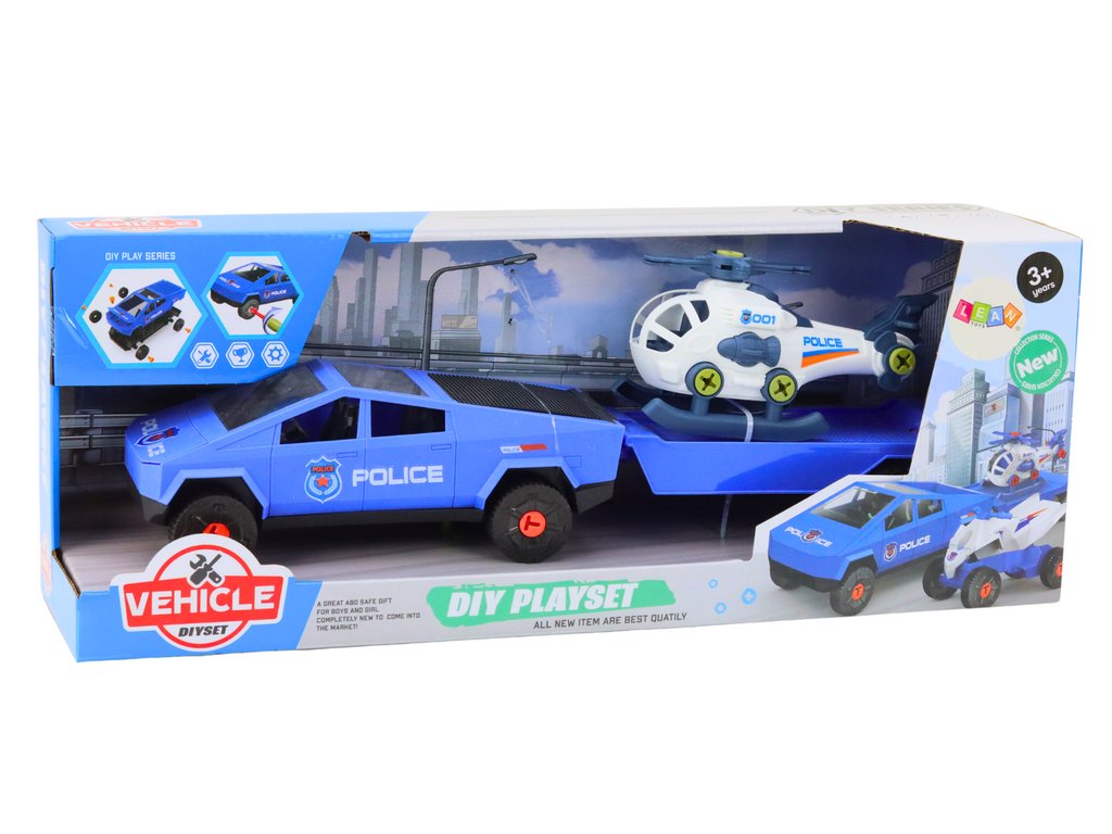 Комплект Модерна кола с хеликоптер и ремарке за разглобяване DIY синьо
