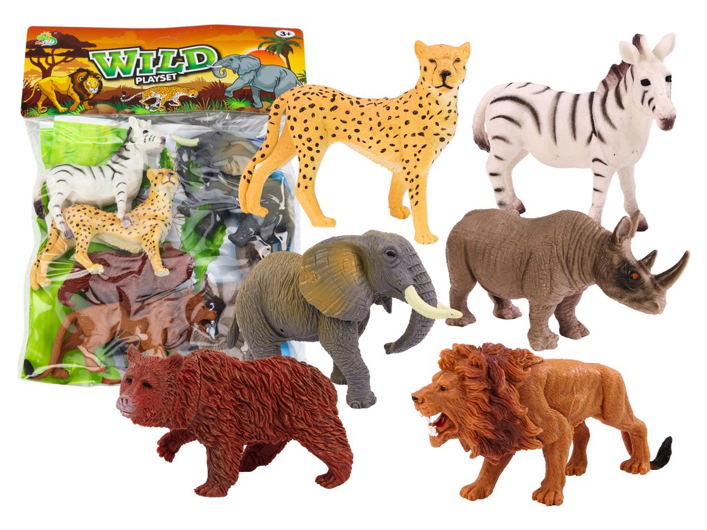 Комплектът с фигури на диви животни не е просто играчка, а и отлична образователна и творческа забавление за деца. Включва шест различни фигури като слон, лъв, зебра, гепард, мечка и носорог, които позволяват да се открие вълнуващият свят на африканската фауна.