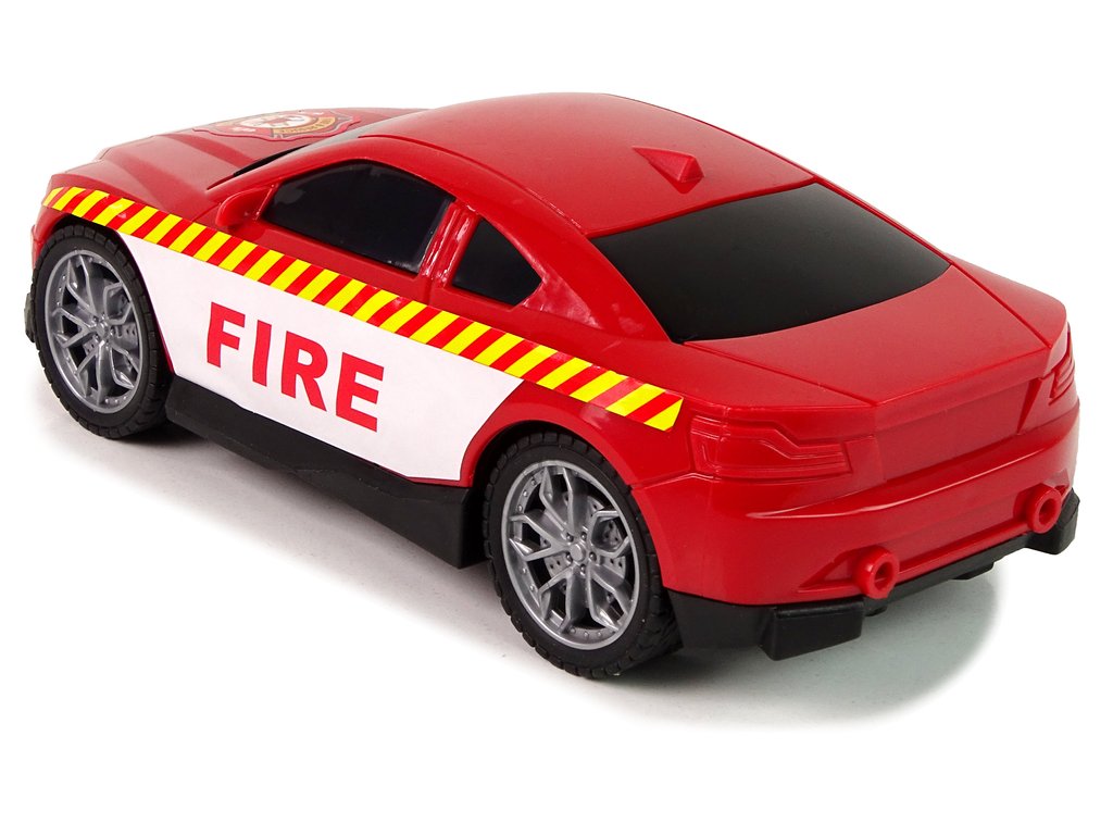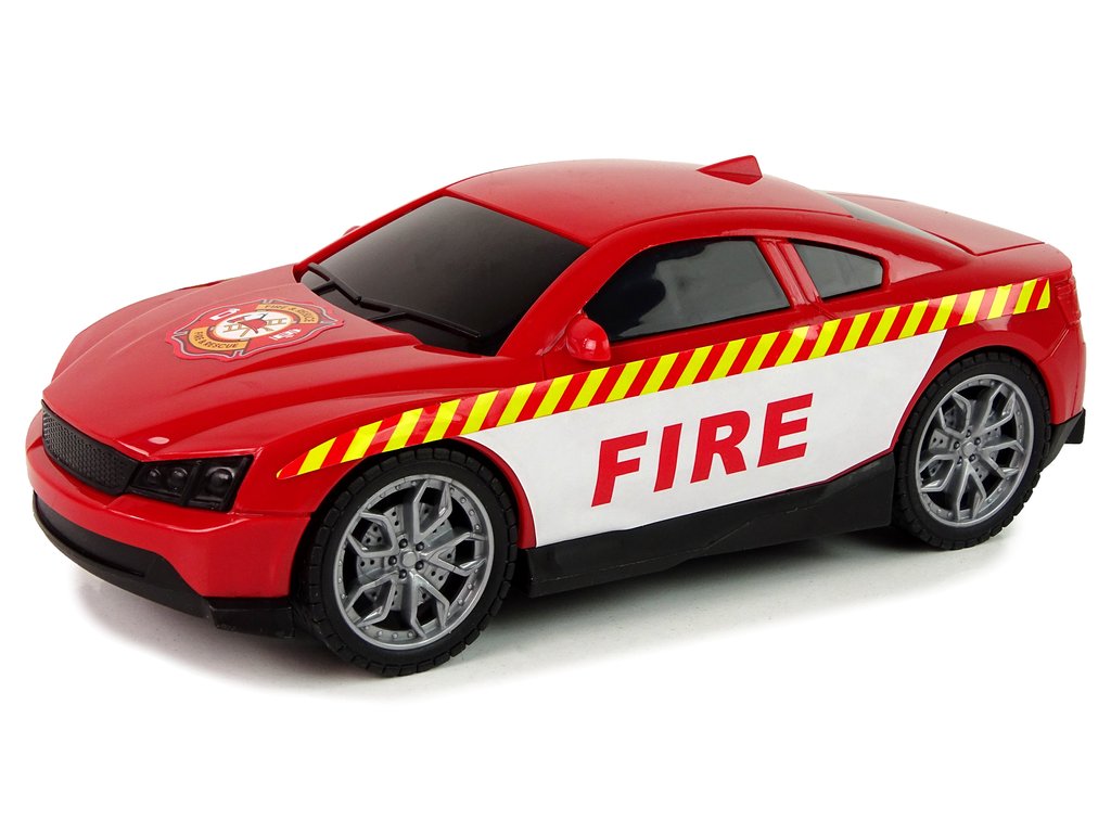 - Кола има ярки пожарникарски стикери, тонирани прозорци и гуми от гумена смес. По равна повърхност достига невероятна скорост.