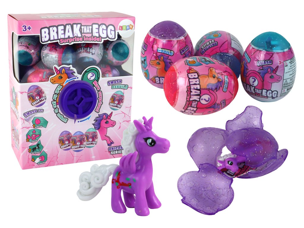 Върху кутията на комплекта има колелце, което след завъртане по посока на часовниковата стрелка избира еднорога, който ще излезе от яйцето. Механизмът е проектиран така, че яйцето изскача от специален отвор и доставя на детето вълнуваща изненада. Детето изпитва радостта от откриването на различни видове еднорози с всяко отваряне на яйцето.