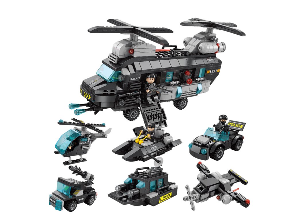 Комплектът дава възможност за сглобяване на до 19 различни комбинации от специални полицейски превозни средства. Децата могат да се насладят на безкрайна креативност и много часове забавление. Може да се сглоби хеликоптер на специалното звено, многофункционален – идеален за спасителни операции и специални мисии. Боен самолет – бърз и маневрен, оборудван с най-съвременна бойна техника. Бойни превозни средства – разнообразни сухопътни и водни машини, включително бронирани бойни автомобили, готови за действие при всякакви условия.