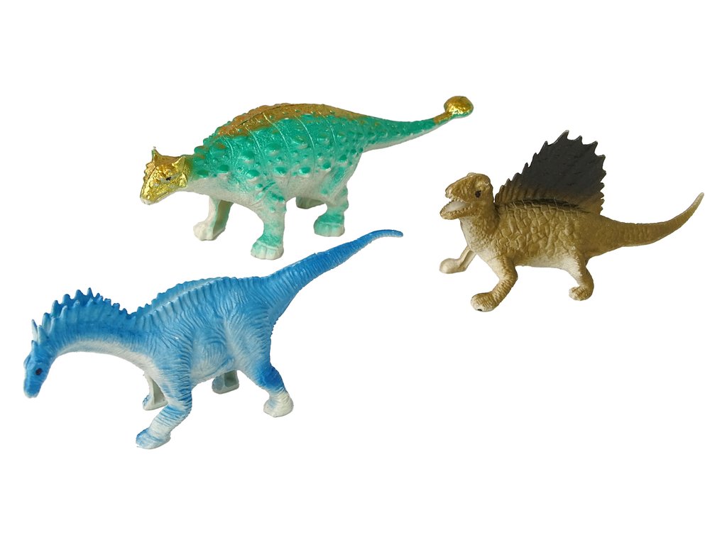 Комплектът съдържа 9 цветни фигури на динозаври, като всяка представлява различен вид от този праисторически гигант. Децата могат да изследват техния завладяващ свят и да се забавляват с разнообразните им форми. Всяка фигурка е изработена детайлно, за да пресъздаде характерните особености на съответния вид, което добавя автентичност на играта. Всички фигури са изработени от пластмаса, гарантираща дълготрайна и устойчива на игра забавление.