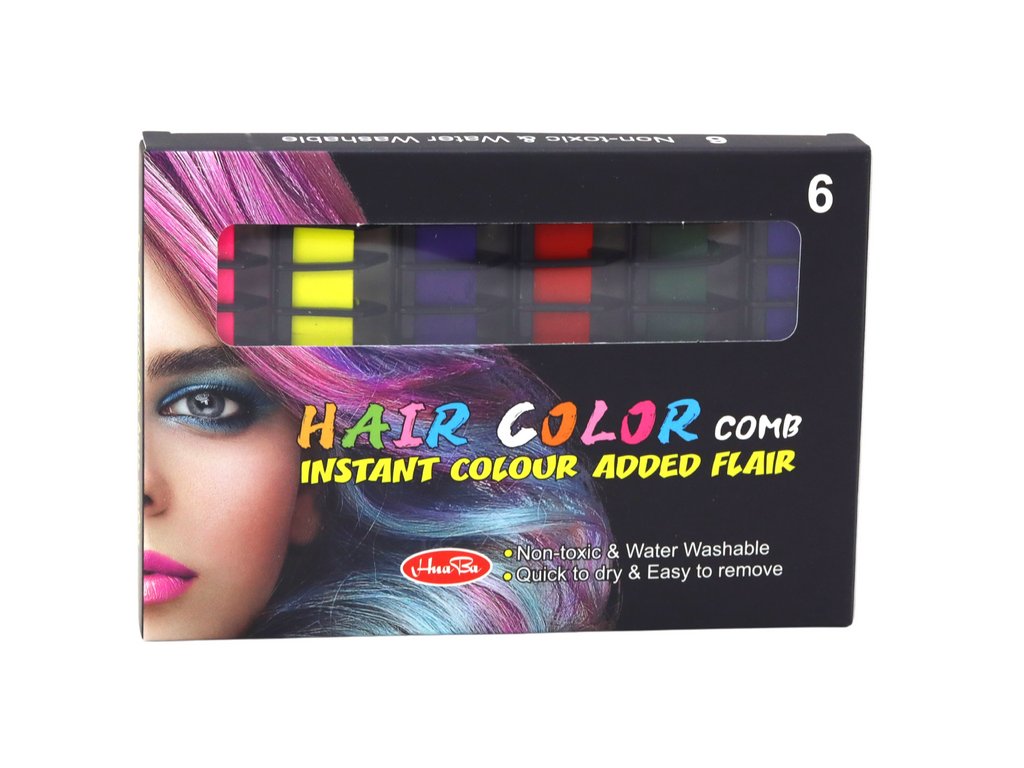 Уникален комплект за боядисване на коса, идеален за всички, които искат да променят визията си по вълнуващ и креативен начин! Комплектът съдържа 6 цвета тебешир: розов, жълт, син, лилав, зелен и червен, което позволява разнообразни стилови експерименти с косата.