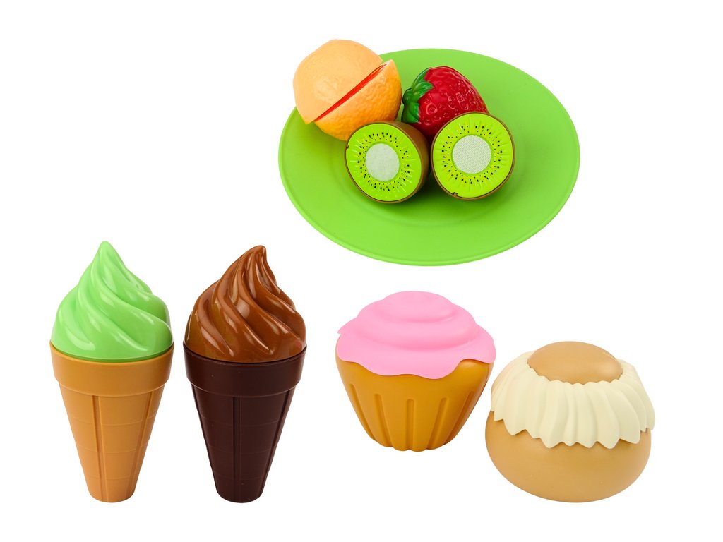 Комплект за бързо хранене: плодове, стек, сладолед, аксесоари, пица, пържени картофи, 26 части.