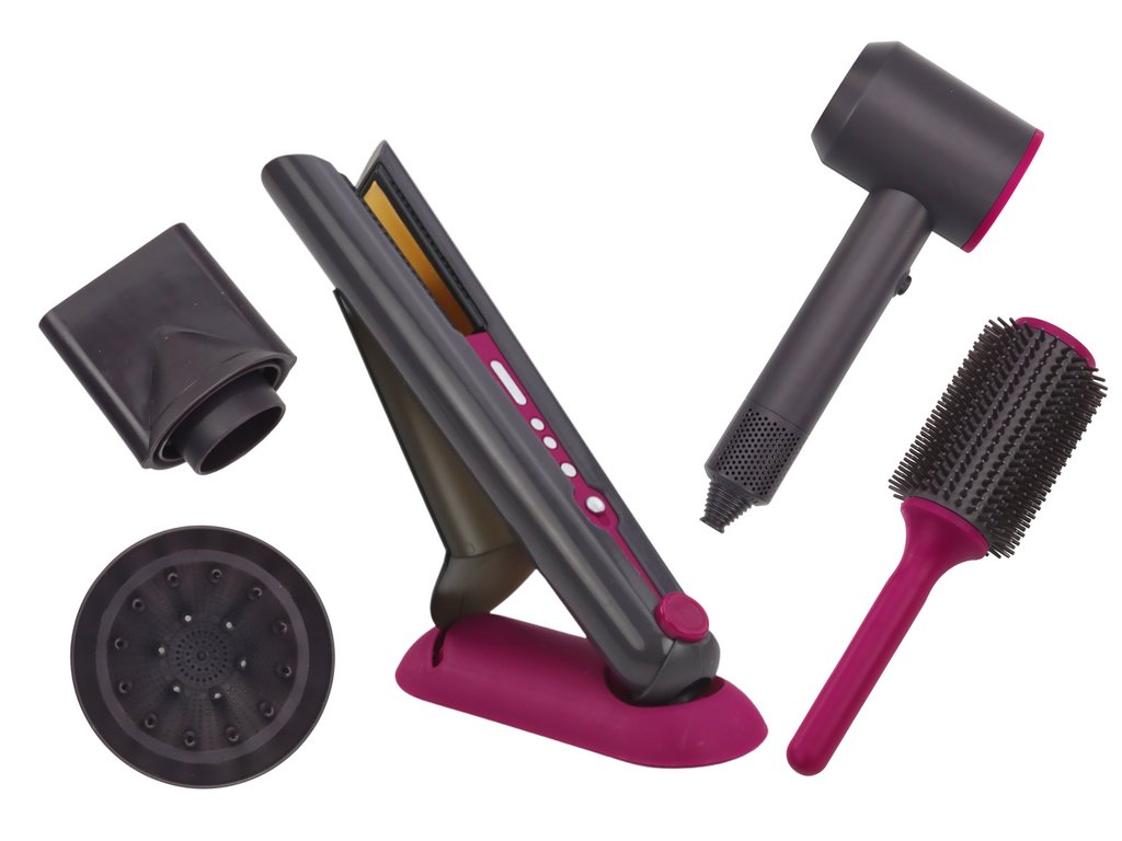Комплект за фризьор с сешоар, преса, четка и приставки