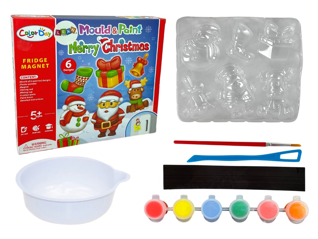 Комплект за изработка на магнитчета от гипс Коледни мотиви е перфектният подарък за всяко дете, което обича да твори и рисува.Работата с гипс е вълнуващо преживяване. С комплекта можете да създадете 6 броя магнити за хладилник.