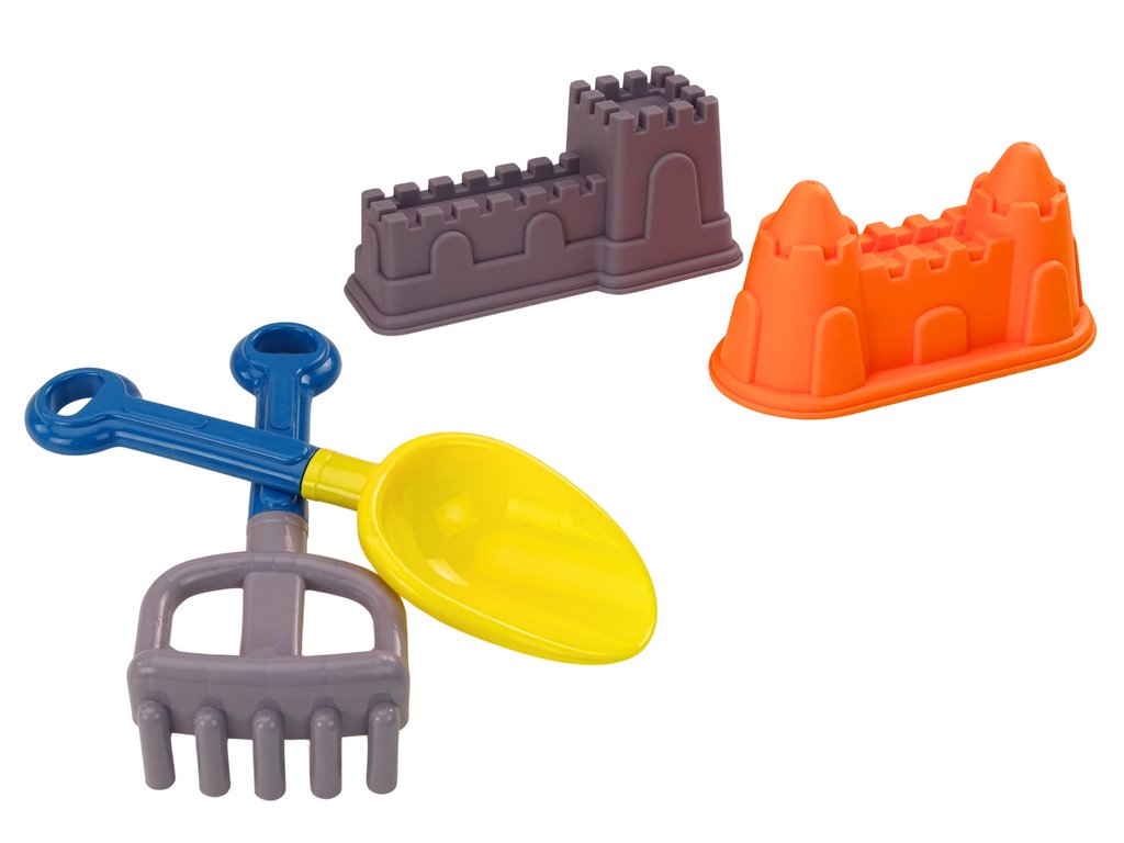 Освен мелничката комплектът включва лопатка, грабли и две формички с форма на крепости. Лопатката и граблите са идеални за копаене, пресяване и оформяне на пясъка, което позволява създаването на разнообразни постройки и пясъчни произведения на изкуството. Формичките с форма на крепости добавят фантазия в играта и дават възможност на децата да изградят свои собствени пясъчни замъци, създавайки свое малко кралство на морския бряг или в пясъчника.