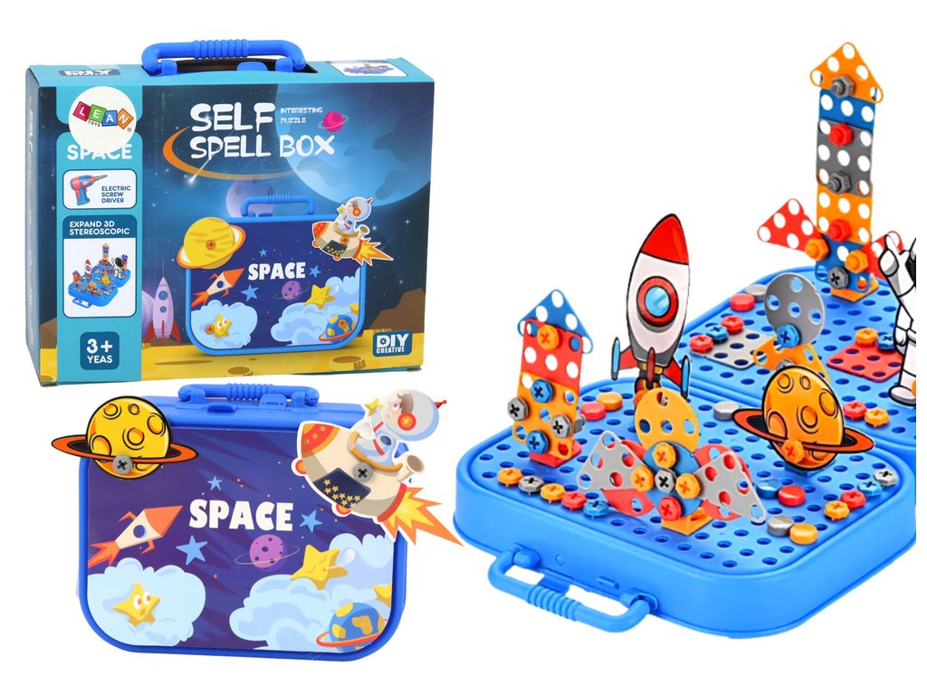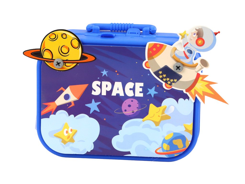 Този комплект е истинско космическо приключение за малки откриватели! Куфар-работна маса „направи си сам“ с космическа тематика е идеалната комбинация от конструкторска игра и увлекателния свят на космоса.