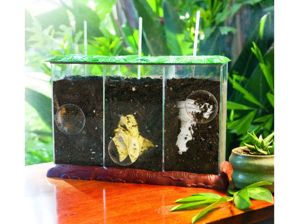 Този прозрачен компостер позволява на децата ясно да наблюдават целия процес на разлагане от началото до края.