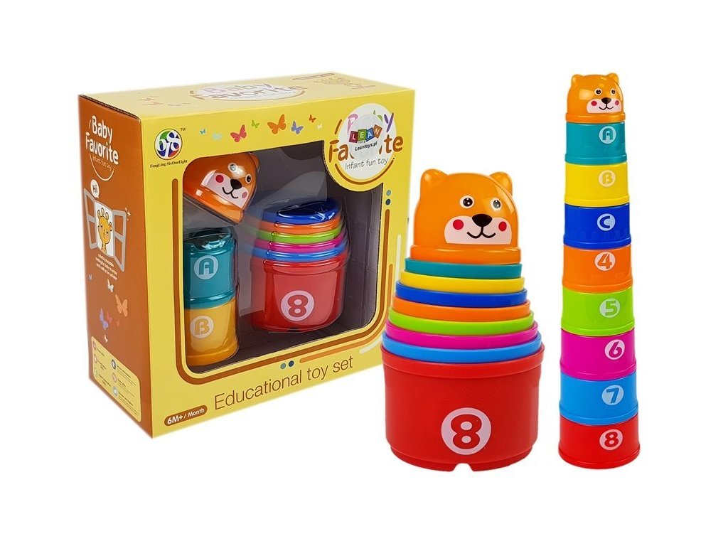 Конструктор пирамида с цифри за най-малките е играчка, която отлично подпомага развитието на детето. Състои се от чашки с различни цветове и цифри.