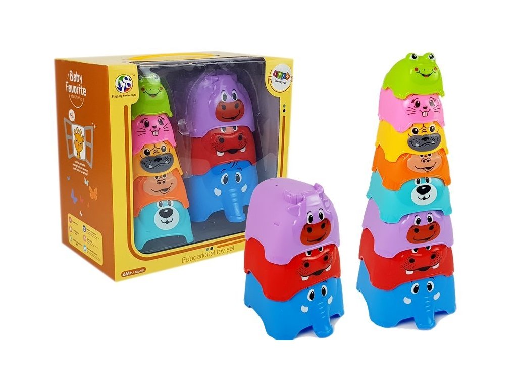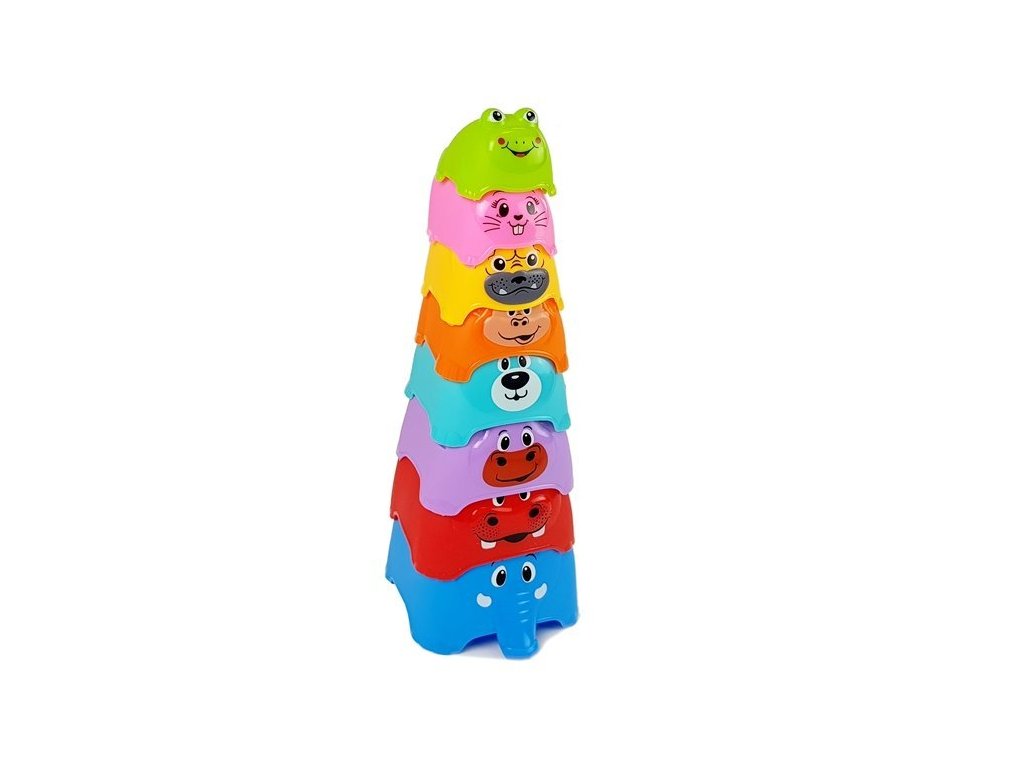 Конструктор пирамида с животни за най-малките е играчка, която перфектно стимулира развитието на детето. Състои се от чашки с различни цветове и животински мотиви. В най-горната част на пирамидата е най-малкият съд под формата на жабка. Чашките са изработени от безопасен, нетоксичен материал, който е здрав и надежден.