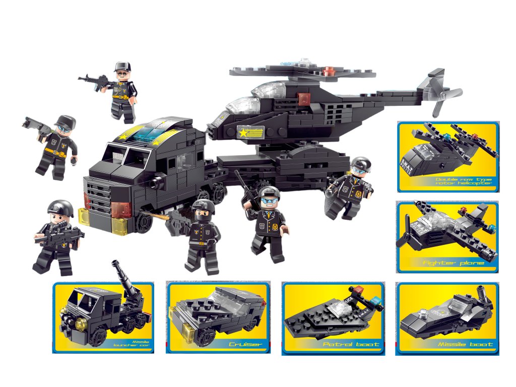 Всеки модел изглежда реалистично и може лесно да се преконфигурира. Благодарение на шестте включени фигурки на SWAT, незабавно може да започне спасителна или ударна операция на сушата и в морето. Конструкторът подпомага въображението, логическото мислене и креативната игра.