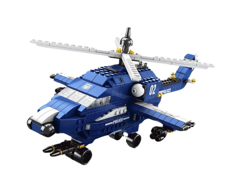 Конструктор полицейски хеликоптер 6в1 син 1000 части