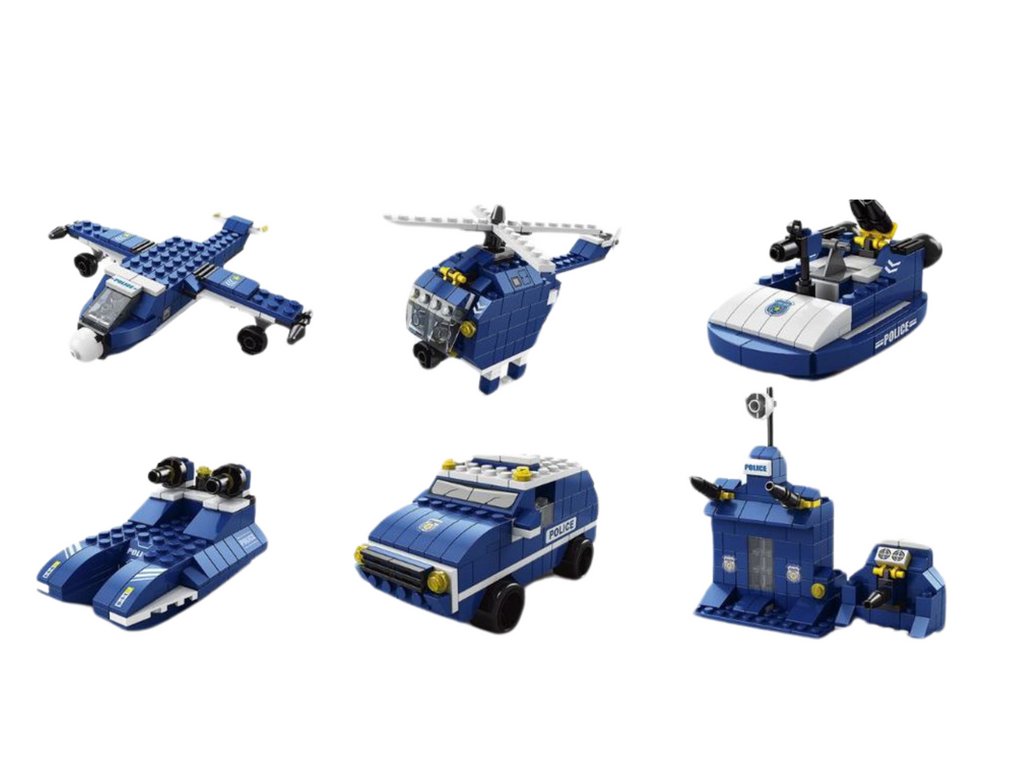 Комплектът включва 1000 прецизно изработени части, с които могат да се сглобят шест различни модела полицейски превозни средства, включително полицейски хеликоптер. Всяка част е с високо качество, осигуряваща лесен монтаж и здравина на конструкцията. Комплектът дава възможност да се изградят реалистични модели на различни полицейски машини, като по този начин децата се запознават креативно с оборудването, използвано от службите за сигурност.