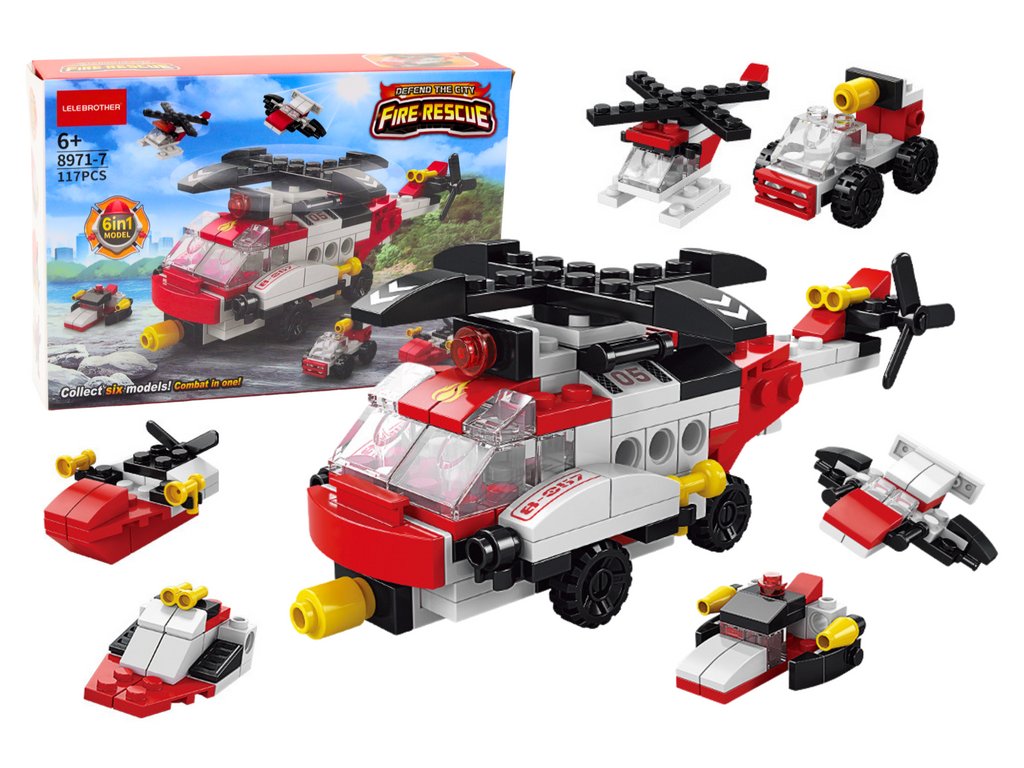 Конструктор пожарен хеликоптер 6в1 предлага креативно забавление за малки и големи любители на конструирането. Комплектът съдържа 117 прецизно изработени части, които позволяват сглобяване на до шест различни модела превозни средства.