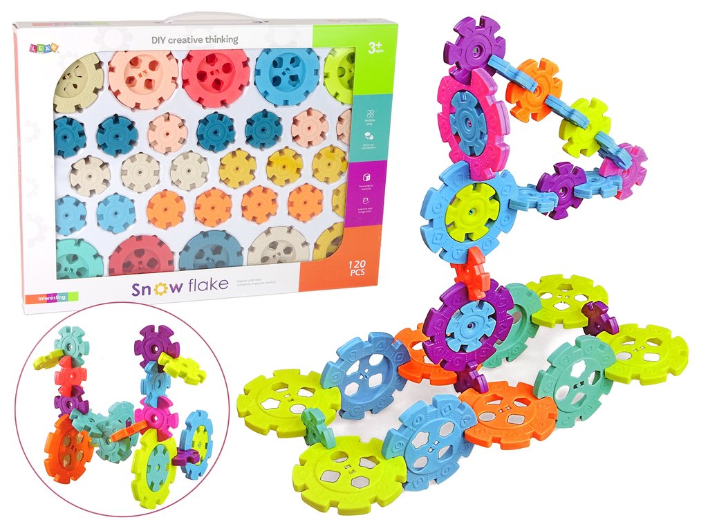 Това е универсална играчка, която ще се хареса както на момчета, така и на момичета. Вашето дете ще се развива в много отношения. Конструкторът е с форма на снежинки, а тяхното комбиниране и игра развиват детето ви на много нива. Комплектите позволяват творческа игра, развиват фината моторика, подобряват прецизността на движенията, стимулират креативността, учат формите и цветовете и развиват логическото мислене.