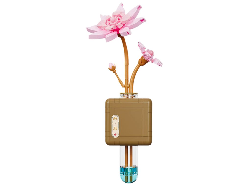 Вдъхнете на интериора си нотка хармония с оригиналния конструктор на лотос. Този елегантен модел представлява символ на чистота и спокойствие под формата на фино изработено розово цвете със странични пъпки. Цялото изглежда леко и декоративно, независимо дали ще се превърне в украса за детска стая, кабинет или всекидневна. Благодарение на креативния дизайн и модерната основа във формата на лабораторна епруветка, моделът придобива нетрадиционен, дизайнерски характер.