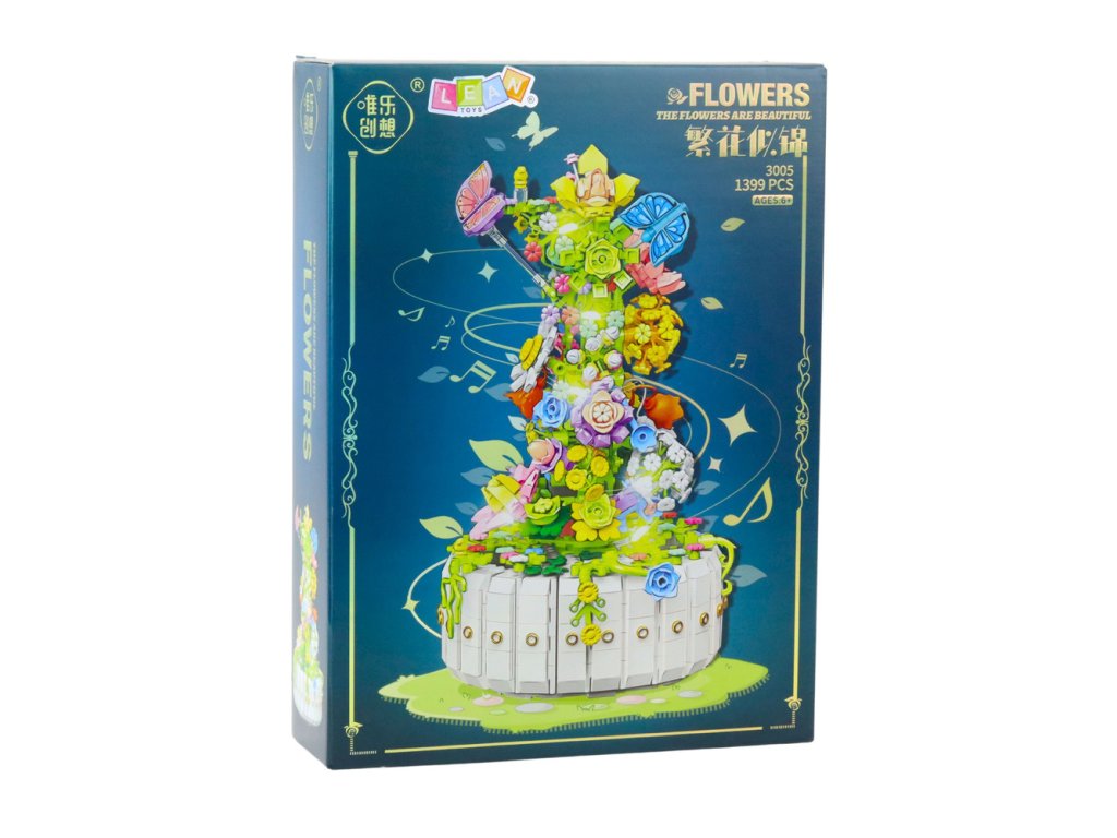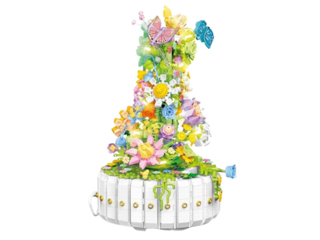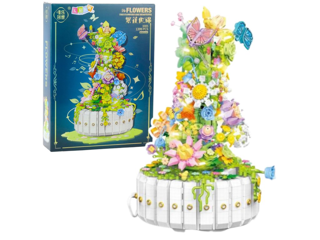 Открийте изключителния конструктор, който съчетава очарованието на цъфнала градина с елегантността на декоративен модел. От цветни части ще сглобите сложна композиция, пълна с цветя, листа, стъбла и пеперуди, които заедно създават спираловидно издигаща се форма, завършваща с отчетлив връх. Моделът е поставен на кръгла основа във формата на бял декоративен съд и благодарение на вграденото LED осветление изглежда още по-приказно – идеален е като оригинална декорация за всекидневна, нежна светлина за спалня или вълшебно допълнение към детска стая.