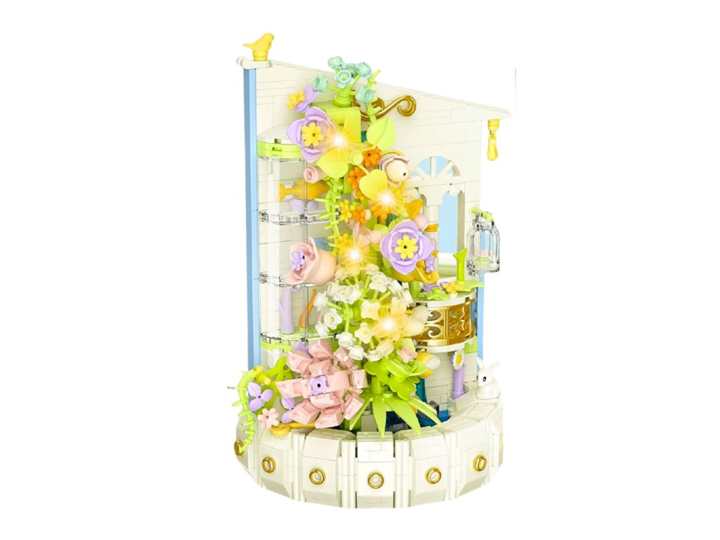 Конструктор романтична цветна кула внася очарованието на цъфнала градина направо във вашия дом. Този декоративен модел с прозорец, колона и саксия е украсен с каскада от цветни цветя в нежни пастелни нюанси. Интегрираното LED осветление придава на цялата конструкция впечатляващ вид и създава уютна атмосфера, особено след стъмване.