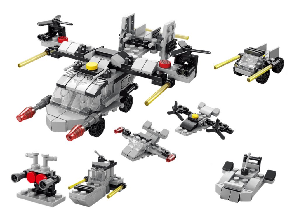 Конструктор военен хеликоптер 6в1 предлага креативно забавление както за малки, така и за големи любители на сглобяеми модели. Комплектът включва 117 прецизно изработени елемента, които позволяват сглобяването на до шест различни модела превозни средства.