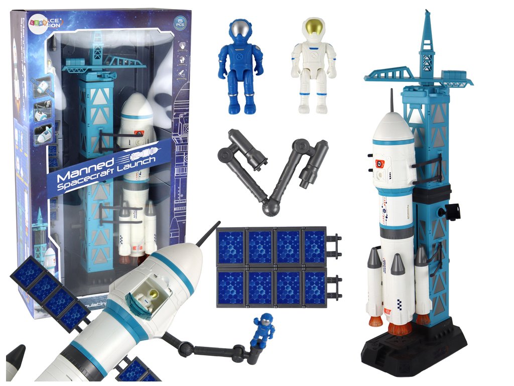 Космически комплект с 15 части и устройството за изстрелване е страхотна играчка, която ви пренася в завладяващия свят на космическите пътешествия. Централната част на комплекта е синьо оцветената изстрелваща кула, която придава автентичност и впечатляващ вид на цялата игра. Оттук ракетата излита към невероятна космическа експедиция.