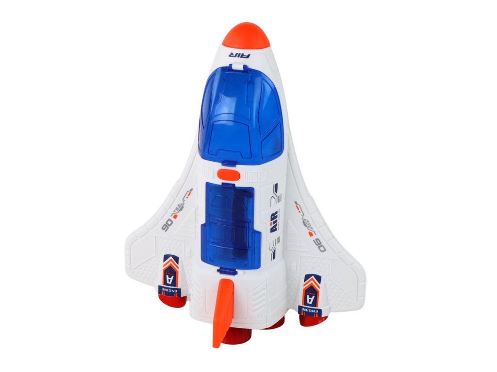 Този детайлно проектиран Космически космически совалка с астронавт за деца пресъздава точно външния вид на истински космически кораб. С музикални и звукови ефекти и възможност да излъчва водна пара чрез специален отвор, предлага още по-реалистично изживяване. При излитане совалката издава звук на стартиращи двигатели, а динамичният ефект се допълва от водната пара. Така децата могат да си представят сцени на излитане и кацане в своите космически приключения.