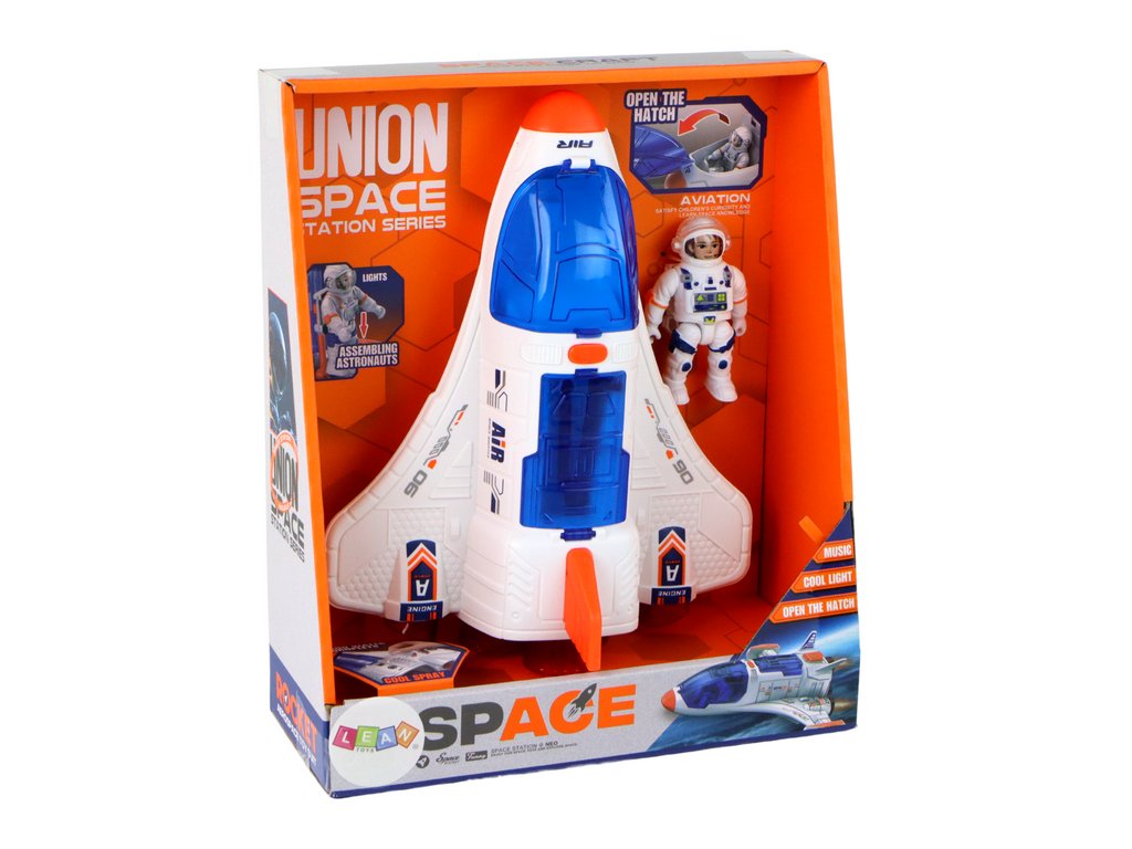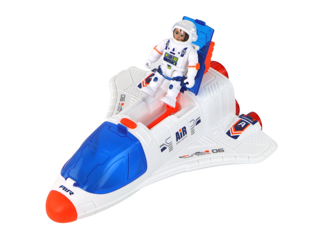 В комплекта ще откриете и астронавт, готов за изследване на космоса. Фигурката е облечена в космически скафандър с каска и ръкавици. С помощта на механична ръка децата могат да пренасят астронавта между совалката и космическия кораб.