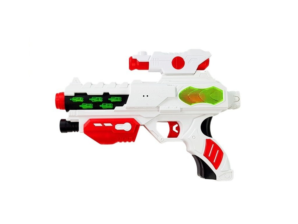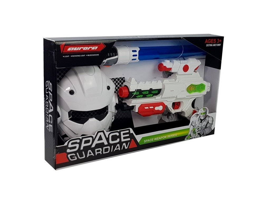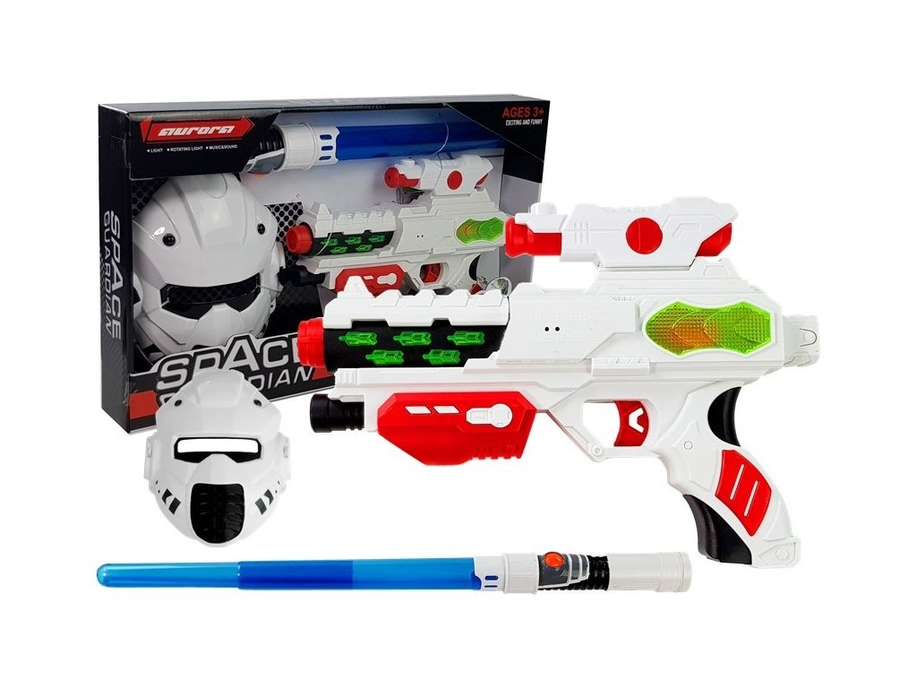 Космически лазерен пистолет с маска и меч ще бъде перфектният помощник в битката срещу опасния враг от далечна планета. Този уникален оригинален пистолет издава космически звуци и светлини, които със сигурност ще вдъхновят всяко дете да играе.
