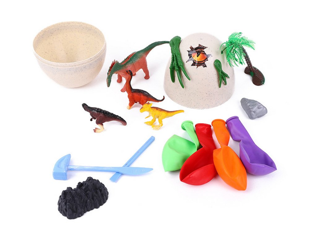 Комплектът за създаване на ледени яйца с динозаври е креативен начин да запознаете децата с увлекателния свят на палеонтологията. Той включва 6 големи пластмасови яйца, всяко от които крие изненада – фигурки на динозаври, балони и археологически инструменти.