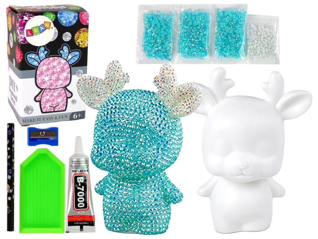 Комплектът включва специална основа, върху която се поставят диамантите, както и два цвята, с които можете да украсите малкия елен според вашите предпочитания. Благодарение на специалното лепило, повърхността на фигурката остава лепкава, така че диамантите да прилепват здраво.