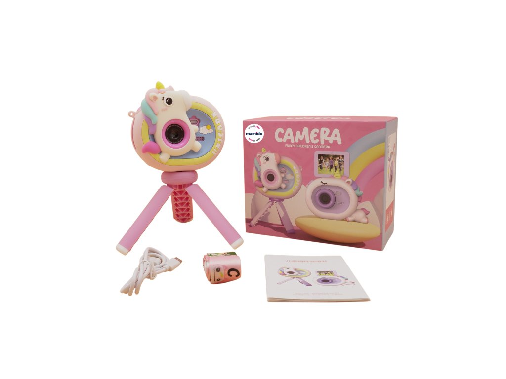 Донесете радост на децата от фотографията с тази очарователна камера. Благодарение на лесната употреба, игривия дизайн и разнообразните функции, тя е идеалният избор за начинаещи фотографи. Камерата е оборудвана с 2,4-инчов дисплей, възможност за заснемане на видео в 720p, правене на снимки с 48 MP, възпроизвеждане на MP3 и играене на прости игри. Комплектът включва статив за стабилни кадри и красиви ефекти благодарение на рамки и филтри с мотив на еднорог. Издръжливият дизайн с възможност за microSD карта (до 32 GB) ще гарантира, че децата ще могат да запазят спомените си.