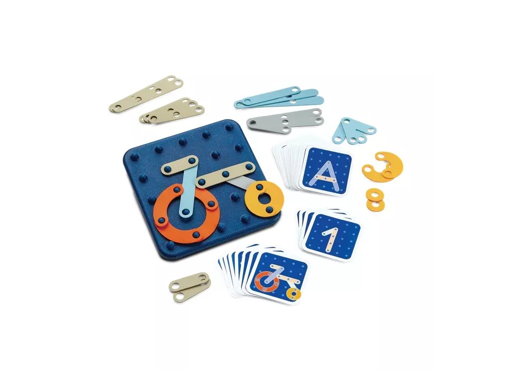 Креативната дъска на марката PlanToys предлага на децата забавление при създаване на геометрични форми, букви, цифри и картинки с помощта на цветни части и двустранни карти за игра. Играта подпомага въображението и креативността при безопасно и екологично изпълнение.