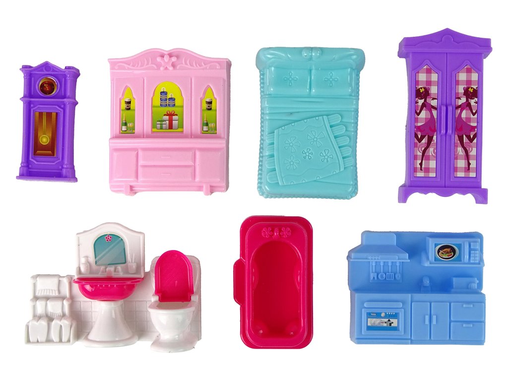 Комплектът включва разнообразни мебели и аксесоари, които позволяват да обзаведете уютна дневна, спалня, кухня или баня. Благодарение на това къщата е напълно оборудвана и готова за фантастични игри. Изработена е от материали с най-високо качество, което гарантира безопасна и устойчива игра и дълготрайна употреба на продукта.
