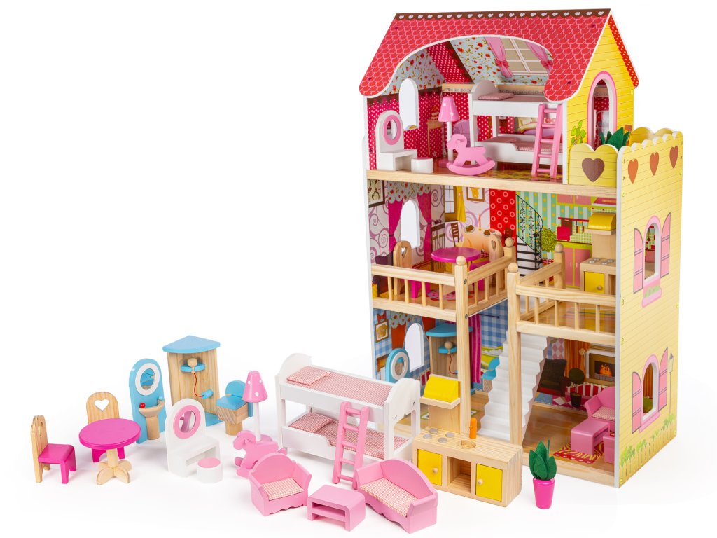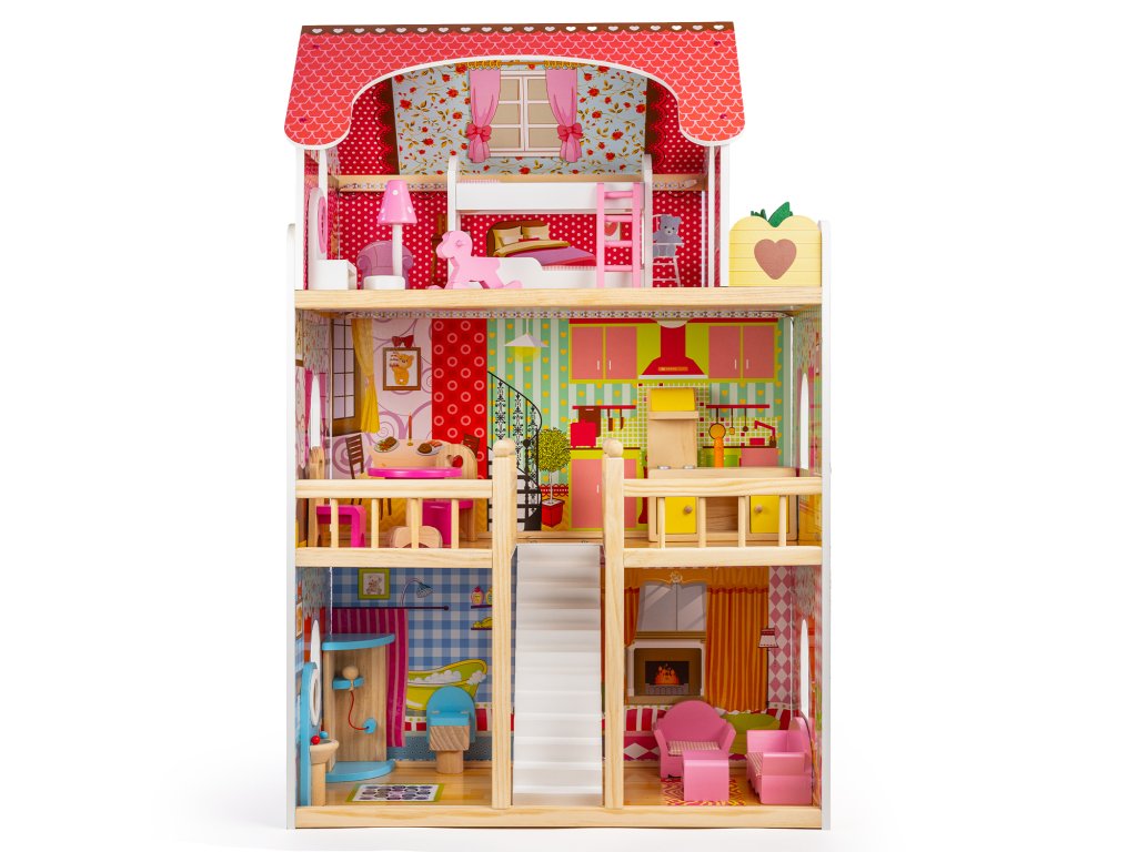 - Къщичка за кукли: Изпипан дизайн със стълби, балкони и красиво декорирани помещения.