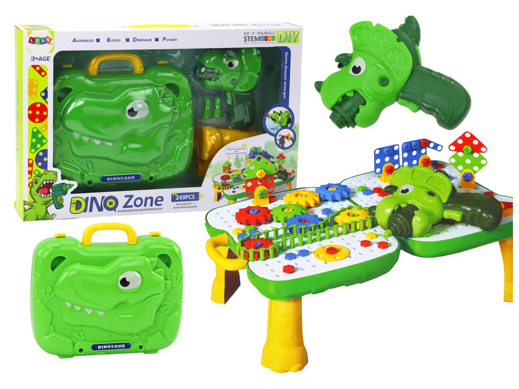 Куфарче и масичка DIY комплект пъзел кубчета динозавър електрическа отвертка 249 части