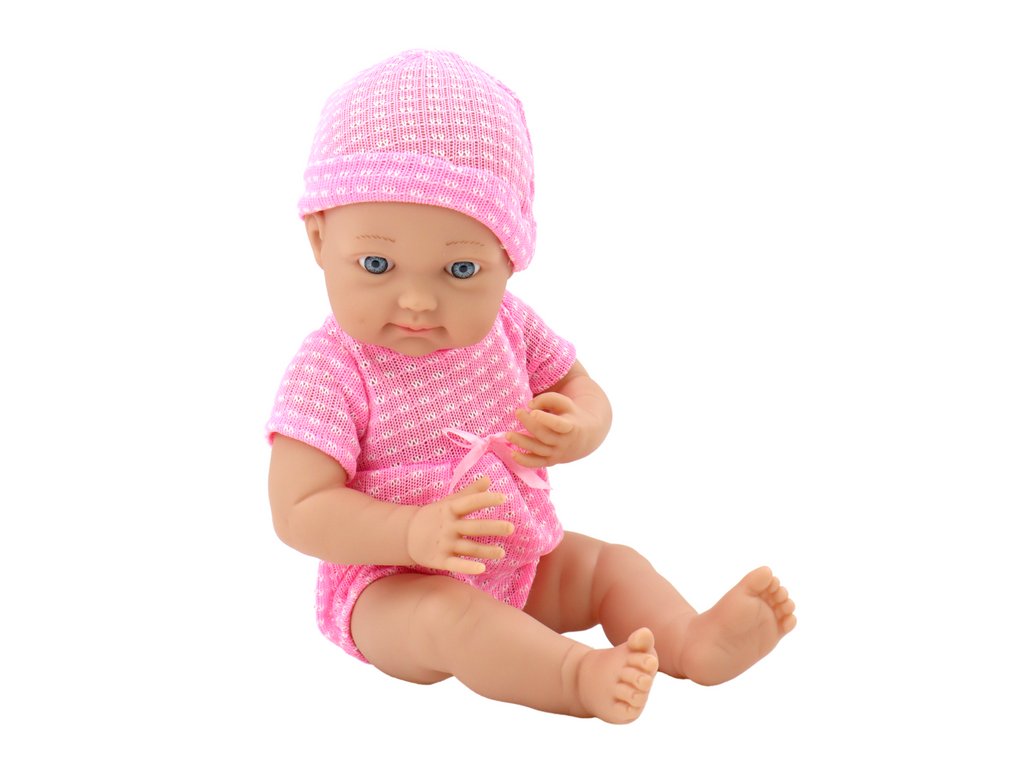 Куклата бебе в розов костюм е много повече от играчка – тя е спътник, който въвежда децата в магическия свят на въображението и грижовните приключения. Нейното сладко розово боди с панделка и съвпадащата шапчица ѝ придават неповторим чар. Подвижните ръчички и крачета позволяват интерактивна игра, развиваща фината моторика и творческите умения на детето.