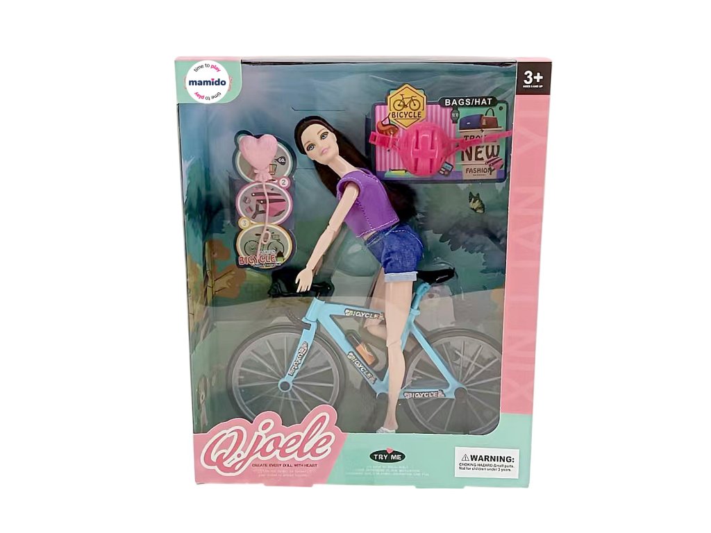 Колелото на куклата носи много забавление на децата и възможност да открият магията на колоезденето. Подвижна кукла в модерно облекло е оборудвана с велосипед и има и практични аксесоари като каска за колоездене и балонно сърце за украса. Благодарение на детайлния дизайн и реалистичните аксесоари, децата могат да играят на спортни пътувания или ежедневни колоездене.