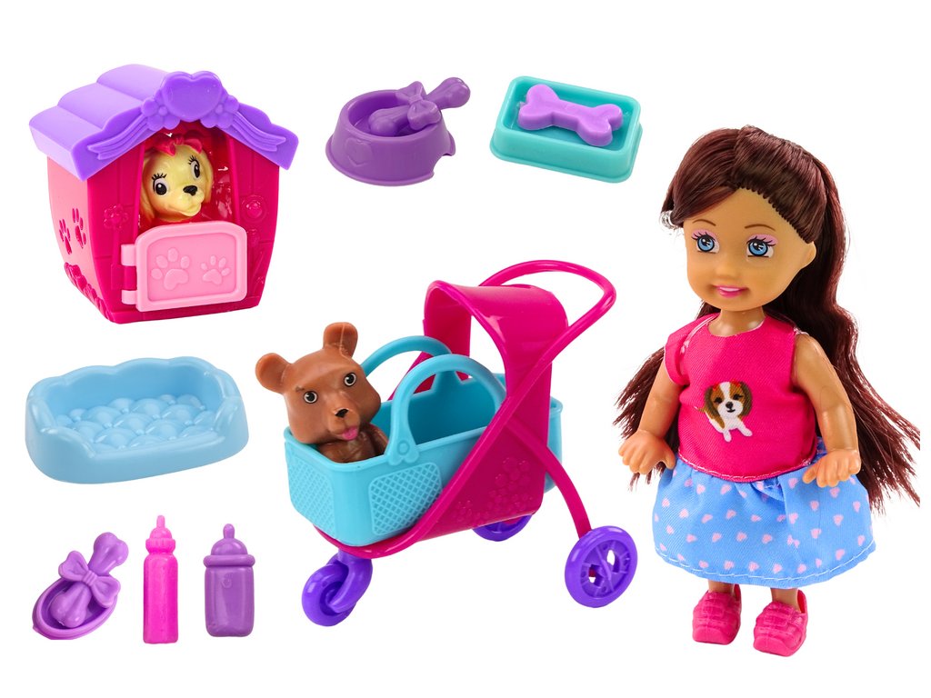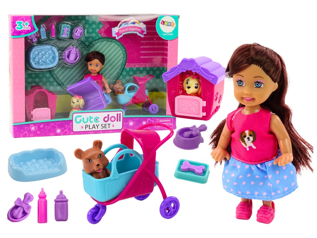 Игралният комплект с кукла, кученца и аксесоари е изключително привлекателно предложение за деца, които обичат да играят с кукли и да се грижат за животинчета.