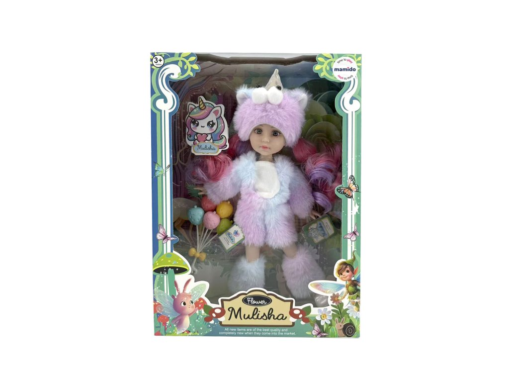 Цветната и очарователна кукла Munlisha ще очарова всяко дете с уникалния си външен вид и подвижно тяло. Облечена е в плюшен костюм на еднорог с цветна коса в дъгови нюанси, която приканва към ресане и създаване на прически. Благодарение на шарнирното тяло, куклата позволява повече движения и естествени пози.
