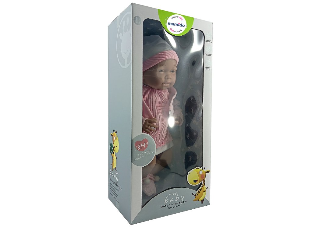 Тази очарователна кукла е изработена от безопасни и издръжливи материали, които осигуряват безопасна игра за деца. Благодарение на реалистичните си черти, включително фини детайли на лицето, тя изглежда като истинско бебе, което я прави по-привлекателна и насърчава децата да участват в грижата за нея. Играта с тази кукла развива емпатията и отговорността у децата и ги насърчава да се грижат за нея, както биха се грижили за истинско бебе. Тя позволява на малките деца да разиграват различни сценарии за грижа, да се учат как да кърмят и хранят бебето, което стимулира тяхното въображение и социално развитие.
