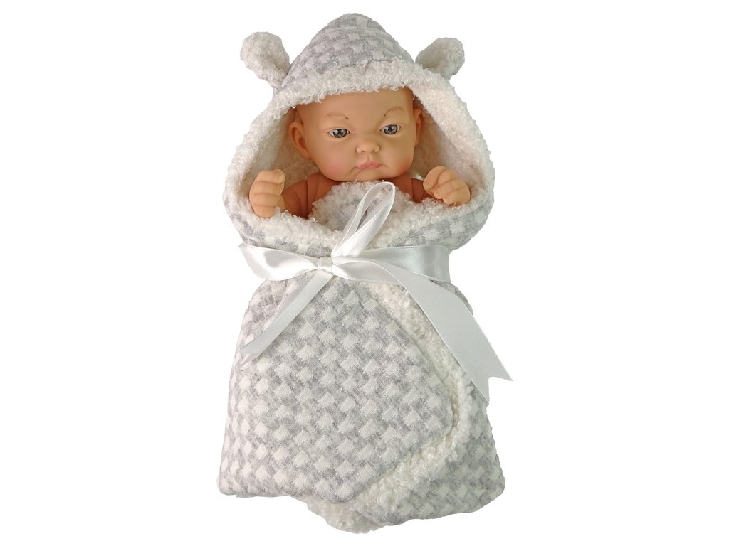 Много момиченца мечтаят за своята кукла, за която да се грижат като за истинско бебе. Куклата е обвита в сива пелена с бяла панделка. Куклата има подвижни ръце.