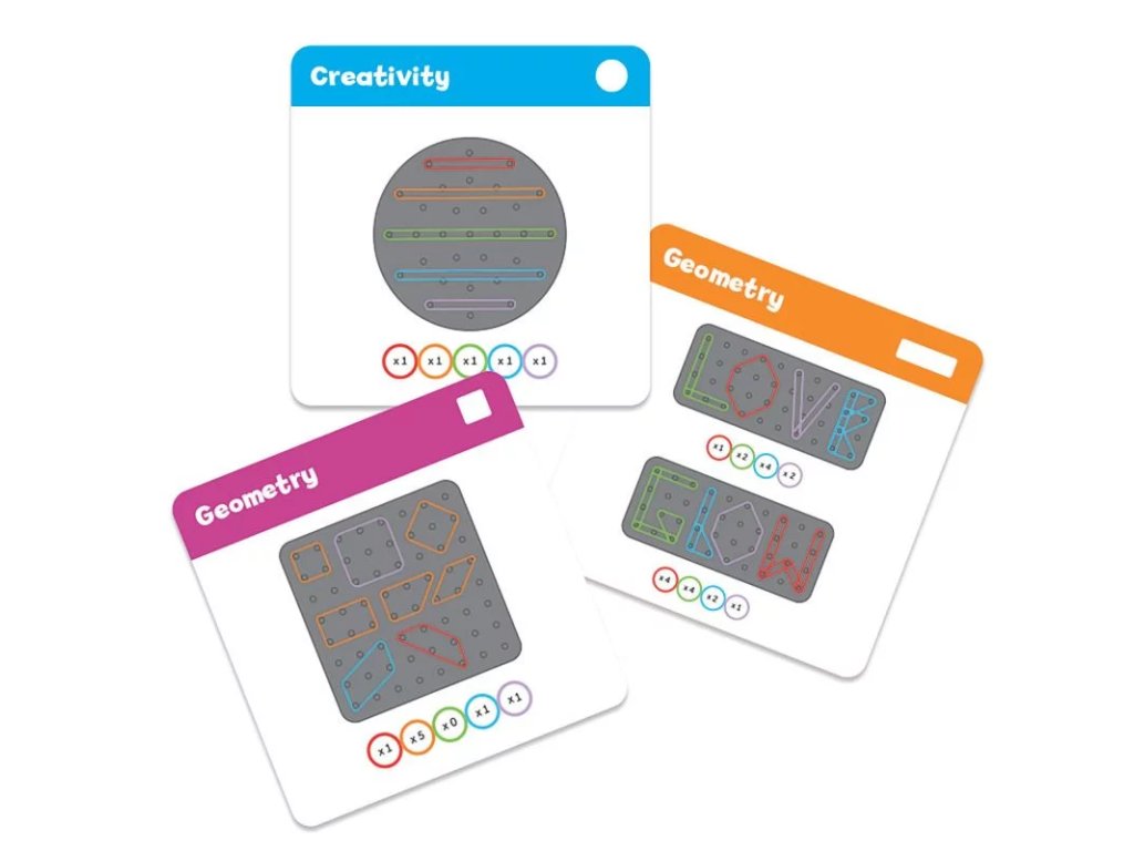 Насладете се на творческо и образователно забавление с геоборд дъски и комплект шаблони, подходящи за деца и педагози.