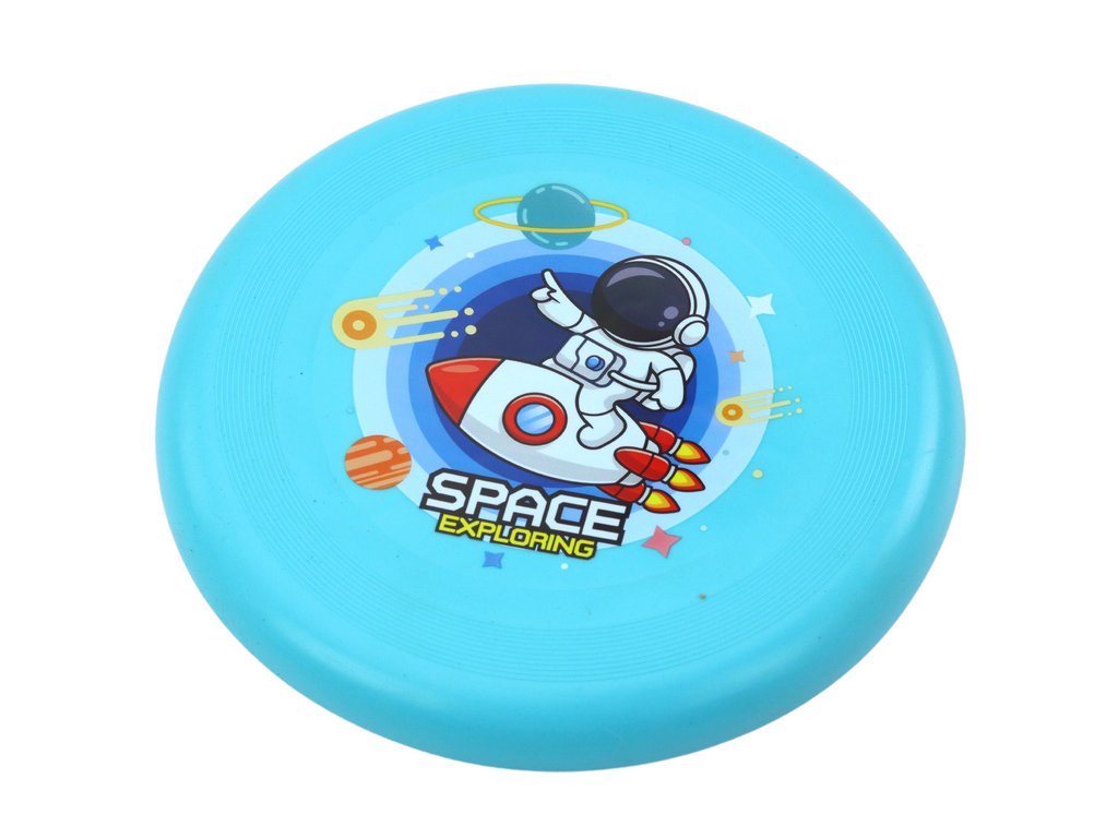 Летящ диск Фризби Космонавт син с рисунка на космонавт в син цвят е перфектната играчка за забавление на открито, която насърчава активното движение и въображението. Този диск е отличен спътник на плажа, в парка или при игра с домашния любимец. Благодарение на качествената изработка и аеродинамичната форма, лети плавно и прецизно.